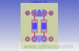 這里我們以0402的AC耦合電容為例進(jìn)行仿真,一端Botm層通過(guò)換層過(guò)孔連接Top面的AC耦合電容,另外一端通過(guò)過(guò)孔再連接到Art12層,這里我們分別仿真3種情況;電容掏空到GND02層,X方向掏34mil,Y方向掏66mil(Case1)。模型建好后的3D效果圖如圖4所示。