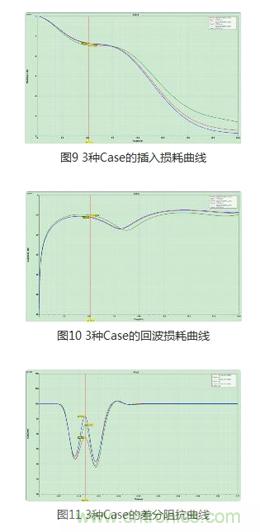 下面是Case1,Case2,Case3三種情況下AC耦合電容插入損耗,回波損耗以及差分阻抗曲線,分別如圖9,圖10及圖11所示。這里使用SnpExpert對(duì)S參數(shù)進(jìn)行比較。