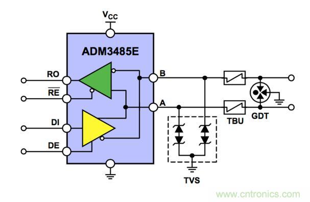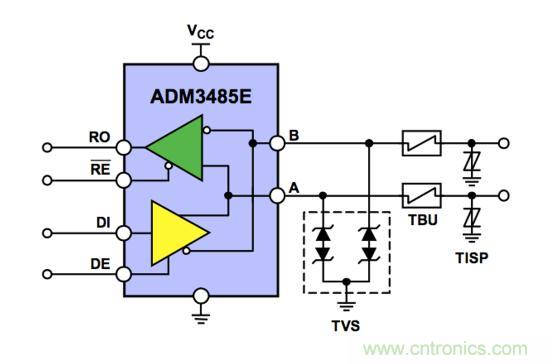 【導(dǎo)讀】在實(shí)際的工業(yè)、電力、自動(dòng)化及儀器儀表應(yīng)用中,RS-485總線標(biāo)準(zhǔn)是使用最廣泛的物理層總線設(shè)計(jì)標(biāo)準(zhǔn)之一,由于其會(huì)在惡劣電磁環(huán)境下工作,為了確保這些數(shù)據(jù)端口能夠在最終安裝環(huán)境中正常工作,它們必須符合相關(guān)的電磁兼容性(EMC)法規(guī)。在本文中,世健公司結(jié)合優(yōu)勢的代理線ADI( RS-485芯片)、Bourns(在端口EMC防護(hù)方面的器件),從原理分析到實(shí)測來為大家?guī)碓敿?xì)的RS485的端口防護(hù)分析。