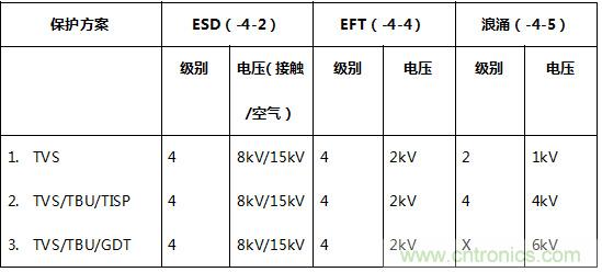 圖15:三個(gè)RS485端口的EMC方案保護(hù)級(jí)別比較
