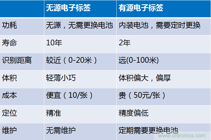 電子車牌的核心就是基于RFID技術的電子標簽,而RFID電子標簽又分為有源和無源的兩類,兩種標簽的優(yōu)缺點如表1所示。
