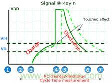 圖1 STM8S電容式觸摸按鍵的工作原理