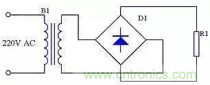 設(shè)B1次級電壓為E,理想狀態(tài)下負載R1兩端的電壓可用下面的公式求出: