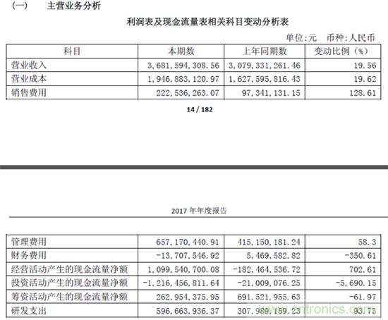 匯頂科技2017年的公司研發(fā)支出為5.97億元,較2016年3.08億元增加93.83%,研發(fā)開支占銷售收入比重為16.2%。對(duì)于研發(fā)費(fèi)用的增加,公司解釋稱,是為了在新技術(shù),新產(chǎn)品領(lǐng)域?yàn)楣镜某掷m(xù)增長提供更有力的動(dòng)力,符合公司的長期發(fā)展戰(zhàn)略。