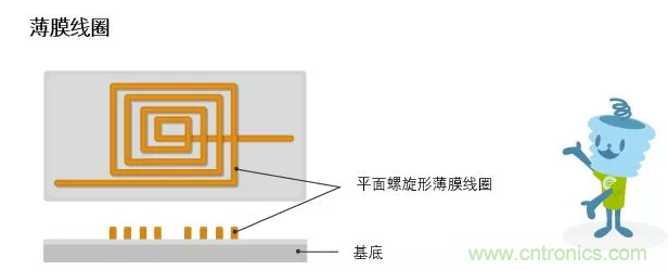 薄膜電感采用的是類似于IC制作的工藝,在基底上鍍一層導體膜,然后采用光刻工藝形成線圈,最后增加介質層、絕緣層、電極層,封裝成型。