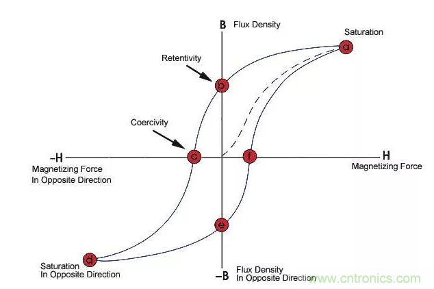 增加磁芯的磁導率,可以提高電感值,通常使用鐵磁性材料做磁芯。鐵磁性材料存在磁飽和現(xiàn)象,即當磁場強度超過一定值時,磁感應強度不在增加,即磁導率下降了,也就是電感下降了。在額定電感值范圍內,允許的最大電流即為飽和電流。