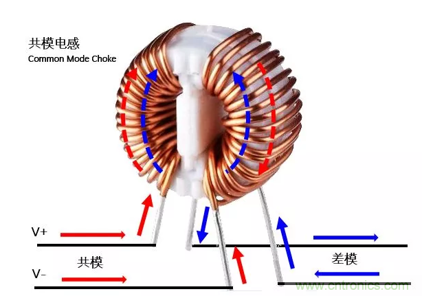 換一個方式理解:當V+上流過一個頻率的共模干擾,形成的交變磁場,會在另一個線圈上形成一個感應電流,根據(jù)左手定則,感應電流的方向與V-上共模干擾的方向相反,就抵消了一部分,減小了共模干擾。
