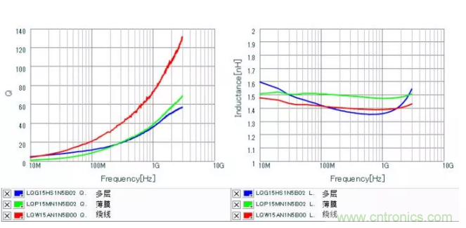 當然隨著工藝技術的提升,現(xiàn)在也有高Q值系列的多層片狀電感,例如TDK的MHQ系列、太陽誘電的HKQ系列。