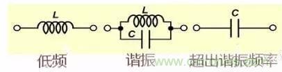 電感線圈在低頻、諧振及工作頻率高于諧振頻率時(shí)會呈現(xiàn)不同的特性,特別是當(dāng)工作頻率超過諧振頻率是電感不再是電感而變成的電容。圖中的電容是線圈的匝間電容。