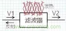 插入濾波后,會有什么結(jié)果?V2 一定小于 V20,也就是說插入濾波器后輸出變小了,為何輸出變小?一部分變成熱量、一部分被濾波器擋住返回了,如圖: