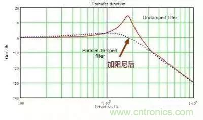 可以看出,截止頻率處的尖峰被壓平,也就是說不再使得噪聲被放大。其中電容 Cd 對阻尼不起作用,只是為了隔離輸入電壓以避免電阻產(chǎn)生