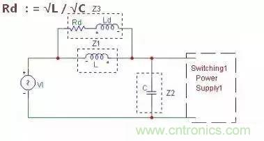 如圖:在電感上并聯(lián)一個(gè)電阻與電感串聯(lián)的電路,這稱為串聯(lián)阻尼法,效果與并聯(lián)阻尼相同,不足之處是由于在原電感上并聯(lián)電阻電感后對高頻干擾信號的衰減差一點(diǎn),這是顯而易見的。事實(shí)上大部分的實(shí)際應(yīng)用中Ld 都被省略了,僅僅在電感上并聯(lián)一個(gè)電阻,這個(gè)電阻稱為阻尼電阻,目的與前述一樣防止在截止頻率處把干擾信號放大,實(shí)際使用中阻尼效果還是不錯(cuò)的。