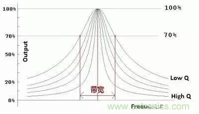 有些電路我們需要高 Q 值,比如振蕩器,Q 值越高越容易起振,比如收音機(jī)機(jī)調(diào)諧回路,Q 值越高選臺時(shí)越不容易串臺,這主要是 Q 值高時(shí)-3dB帶寬變狹的緣故。如下圖所示: