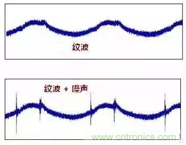 常有人描述問題時(shí)把紋波和噪聲混為一談。紋波是低頻的,噪聲是疊加在紋波的干擾信號。如圖: