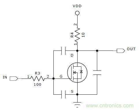 因為MOS管的反饋引入了電容,當這個電容足夠大,并且前段信號變化快,后端供電電壓高,三者結(jié)合起來,就會引起積分過充振蕩,這個等價于溫控的PID中的I模型,要想解決解決這個米勒振蕩,在頻率和電壓不變的情況下,一般可以提高MOS管的驅(qū)動電阻,減緩開關的邊沿速度,其次比較有效的方式是增加Cgs電容。在條件允許的情況下,可以在Cds之間并上低內(nèi)阻抗沖擊的小電容,或者用RC電路來做吸收電路。