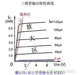 當(dāng)IB很大時(shí),IC變得很大,不能繼續(xù)隨IB的增大而增大,三極管失去放大功能,表現(xiàn)為開(kāi)關(guān)導(dǎo)通。