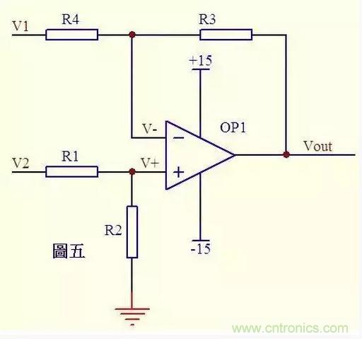 如果R2=R6,R4=R5,則由abc式得V3-V4=Vi