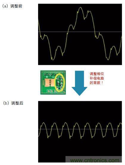 圖2:異常振蕩時和正常工作時的輸出電壓波形 (a)為出現(xiàn)異常振蕩時的輸出電壓波形。(b)為正常工作時的輸出電壓波形。通過調(diào)整反饋環(huán)路相位補(bǔ)償電路的常數(shù),能夠防止異常振蕩。