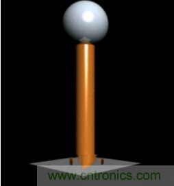 3.組裝線圈。把次級線圈的線的一頭接在那個(gè)金屬球上。這個(gè)球,我們稱為放電頂端。它和地面形成了一個(gè)電容。然后用膠或者熱膠槍把球固定在管子一頭。