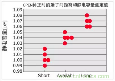 <OPEN補正時的重點>OPEN補正端子間距離和靜電容量測定結(jié)果