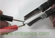 測定電壓在測定時、如下照片把萬用表搭在測定治具的兩端。