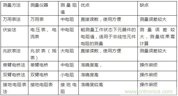 按所使用的儀表分類分為:萬用表法、伏安法、兆歐表法、單臂電橋法、雙臂電橋法、接地電阻表法等。