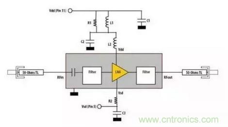 許多集成了線性線路的RF芯片對(duì)電源的噪音非常敏感,通常每個(gè)芯片都需要采用高達(dá)四個(gè)電容和一個(gè)隔離電感來確保濾除所有的電源噪音。一塊集成電路或放大器常常帶有一個(gè)開漏極輸出,因此需要一個(gè)上拉電感來提供一個(gè)高阻抗RF負(fù)載和一個(gè)低阻抗直流電源,同樣的原則也適用于對(duì)這一電感端的電源進(jìn)行去耦。