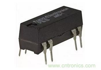 舉例來說,TE Connectivity的JWD-171-10磁簧繼電器有一個(gè)集成吸收器二極管的24V線圈,以及一個(gè)常開觸頭,其在20V時(shí)的額定最大切換電流為500mA。JWD系列磁簧繼電器設(shè)計(jì)安裝在電路板上,基底面與14引腳DIP集成電路相同,不過只有8個(gè)引腳(圖1)。