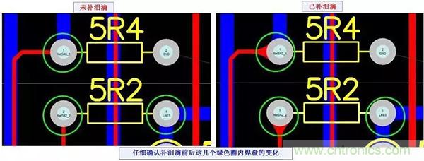 在電路板設(shè)計中,為了讓焊盤更堅固,防止機械制板時焊盤與導(dǎo)線之間斷開,常在焊盤和導(dǎo)線之間用銅膜布置一個過渡區(qū),形狀像淚滴,故常稱做補淚滴( Teardrops )