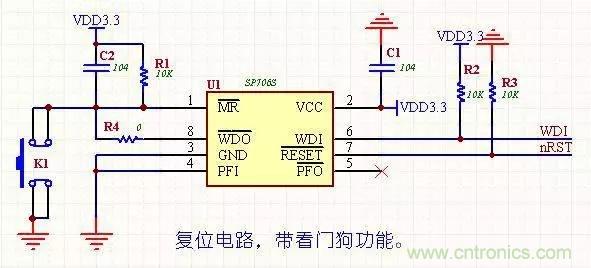 帶看門狗和手動復位,價格便宜(美信的貴很多),R4為調(diào)試用,調(diào)試完后焊接好R4。