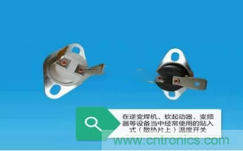 溫度開關(guān)的額定電流值(雙金屬片間流過電流值)一般有1A、2A、5A三個(gè)等級。溫度開關(guān)常見的封裝形式有塑封片狀、金屬殼長條形等,其在電炒鍋、電餅鐺、電烤箱等電熱炊具中被廣泛使用;而在軟啟動(dòng)器、變頻器、逆變式焊機(jī)等工控設(shè)備中,溫度開關(guān)多被固定在大功率元件(晶閘管、IGBT)背后的鋁制散熱片上;此外溫度開關(guān)還會被植入電動(dòng)機(jī)、大容量變壓器繞組內(nèi),充當(dāng)超溫預(yù)警、溫度保護(hù)元件。