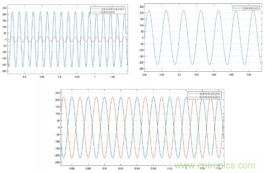 為了更加深入了解串聯(lián)諧振的現(xiàn)象,在matlab/simulink中搭建交流串聯(lián)R、L、C電路。設(shè)置交流電源幅值為220V,頻率為50Hz,電阻為10歐姆,根據(jù)串聯(lián)電路發(fā)生諧振的條件,設(shè)置L為 0.0318H,C為3.1831e-04F,仿真結(jié)果下圖所示。