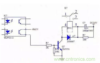 另外,有些集成電路,例如NE555電路是可以直接驅(qū)動(dòng)繼電器工作的,而有些集成電路,例如 COMS 電路輸出電流小,需要加一級(jí)晶體管放大電路方可驅(qū)動(dòng)繼電器,這就應(yīng)考慮晶體管輸出電流應(yīng)大于繼電器的額定工作電流。