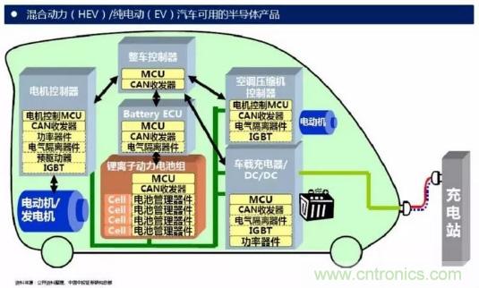 IGBT模塊在電動(dòng)汽車(chē)中發(fā)揮著至關(guān)重要的作用,是電動(dòng)汽車(chē)及充電樁等設(shè)備的核心技術(shù)部件。IGBT模塊占電動(dòng)汽車(chē)成本將近10%,占充電樁成本約20%。IGBT主要應(yīng)用于電動(dòng)汽車(chē)領(lǐng)域中以下幾個(gè)方面: