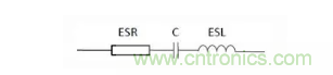 電容的管腳是存在電感的。在低頻應用時感抗較小,所以可以不考慮。當頻率較高時,就要考慮這個電感了。舉個例子,一個0805封裝的0.1uF貼片電容,每管腳電感1.2nH,那么ESL是2.4nH,可以算一下C和ESL的諧振頻率為10MHz左右,當頻率高于10MHz,則電容體現(xiàn)為電感特性。