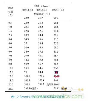 表2 17.5μm外層/35μm內(nèi)層銅箔的PCB上不同孔徑載流能力數(shù)據(jù)表