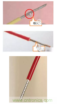 浸錫就是將金屬表面沾上一層錫,防止氧化,方便焊接。時至今日,浸錫在連接器行業(yè)中仍是廣泛應用,浸錫的好壞直接影響到產(chǎn)品的性能及使用壽命。我們都知道導體的電阻在電流的作用下會發(fā)熱,電流越大發(fā)熱量也就越高,浸錫工藝可以將一根一根細導線間的空氣用錫填滿從而減少發(fā)熱量。同時由于多股導線容易散,直接壓在接線端子上時,接觸面積會減少,所以很多廠家選擇浸錫的方式,以免接觸不良發(fā)熱燒壞。浸錫標準比較嚴格,需均勻,平滑,厚度0.05~0.1mm,不能有錫尖,凸錫球,漏錫,堆疊,變形等情況發(fā)生,否則反而會加大接觸電阻,增加發(fā)熱量。