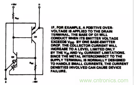 圖3:CMOS開關(guān)中的寄生晶體管益淪應(yīng)