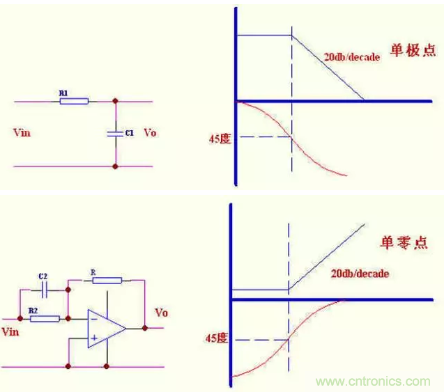 bode 圖可以簡單的判定電路的穩(wěn)定性,甚至可以確定電路的閉環(huán)響應,就向我下面的圖中表示的.零,極點說明了增益和相位的變化。