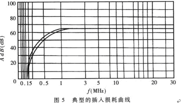 插入損耗用分貝(dB)表示,分貝值愈大,說明抑制噪聲干擾的能力愈強(qiáng)。鑒于理論計(jì)算比較煩瑣且誤差較大,通常是由生產(chǎn)廠家進(jìn)行實(shí)際測(cè)量,根據(jù)噪聲頻譜逐點(diǎn)測(cè)出所對(duì)應(yīng)的插入損耗,然后繪出典型的插入損耗曲線,提供給用戶。