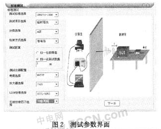 界面模塊貫穿于整個軟件系統(tǒng)是軟件的心靈之窗,它的優(yōu)劣直接影響了用戶使用整個系統(tǒng)的感受。充分考慮了用戶的需求和當今軟件的發(fā)展趨勢之后,本文設(shè)計出人性化和易于理解的界面輸入程序。首先,標準選擇界面用戶只需選擇所需的標準系統(tǒng)會自動從數(shù)據(jù)庫篩選被選標準所規(guī)定的測試項目、分類、檢波方式、測試所需儀器等供用戶選擇并自動產(chǎn)生測試儀器連接配置圖。其次,軟件提供了多種界面風格及色彩,加入了當今軟件的流行元素,避免了用戶審美疲勞,如圖2、3所示。