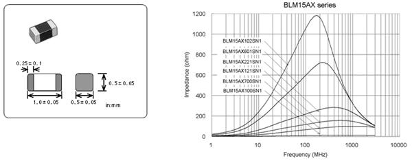 此次通過開發(fā)新材料和改進加工工藝,村田成功開發(fā)生產(chǎn)出了小型低直流電阻產(chǎn)品,0402尺寸的片狀鐵氧體磁珠BLM15AX系列,與之前的產(chǎn)品相比降低了60%。從而此系列產(chǎn)品節(jié)省了小型便攜式設備電路的耗電,使電池壽命得到了延長。在此要介紹的就是這款新型的片狀鐵氧體磁珠BLM15AX系列。