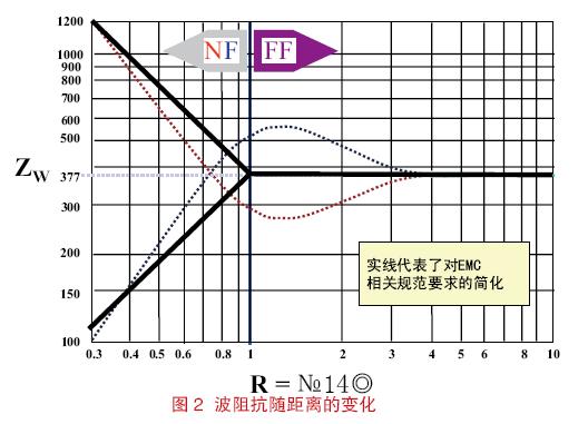 在靠近源的區(qū)域,電場和磁場的關(guān)系非常復(fù)雜;盡管既有電場又有磁場,但該區(qū)域要么基本體現(xiàn)為電場要么基本體現(xiàn)為磁場。在遠離源的區(qū)域,電場和磁場的關(guān)系變得穩(wěn)定了,即E/H=120π。電場和磁場的這種關(guān)系如圖2 所示。EMC從業(yè)者通常采用簡化和近似的距離,即R=λ/2π,并認為場在該處出現(xiàn)從近場到遠場轉(zhuǎn)變。這個公式的前提假設(shè)是源結(jié)構(gòu)的尺寸小于半個波長。天線的設(shè)計者們所尋求的更加精確的表達式可能會成為上述觀點的一個例外情況。[page]