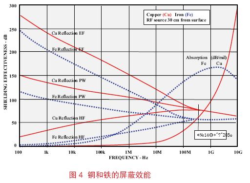 發(fā)射和敏感度問題的頻率低于100kHz 就意味著這是一個磁場(HF)耦合問題。在這種情況下,屏蔽效能主要取決于殼體材料的類型。不管材料如何選擇,首先必須決定最高頻率情況下對屏蔽效能(SE)的要求,然后加上適當(dāng)?shù)碾姶偶嫒菰A俊?br /> 然后,假設(shè)使用的是一種便宜的導(dǎo)磁材料,通過令其吸收損耗(A)= SE+EMCSM 來計算其所需的厚度(t)。