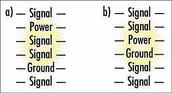 由於信號層和回路層之間總是隔有絕緣層,在10層板設(shè)計(jì)中分配中間6層來走信號線的方案并非最佳。另外,讓信號層與回路層相鄰很重要,即板布局為信號、地、信號、信號、電源、地、信號、信號、地、信號。