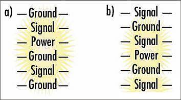 另一種6層板布局為信號、地、信號、電源、地、信號,這可實(shí)現(xiàn)高級信號完整性設(shè)計(jì)所需要的環(huán)境。信號層與接地層相鄰,電源層和接地層配對。顯然,不足之處是層的堆疊不平衡。