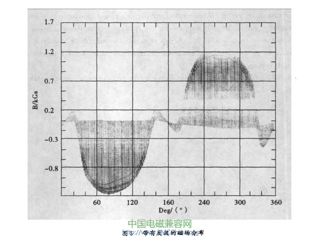 則會嚴重影響EMi,且不易被發(fā)現(xiàn)。以圖5為例.兩磁極在靠近中性線的位置處均有與該磁極極性相反的一段反波.仔細分析借偏的原理可知,該反波事實上相當于一個與正常換向極作用相反的附加磁極,當其被轉(zhuǎn)子換向線圈切割時,產(chǎn)生的電動勢與電抗電動勢同向,也就是會惡化換向;當其分布角度超過借偏角度時,會完全抹殺借偏的作用。