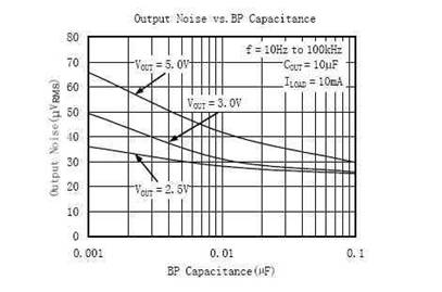 為降低基準噪聲,用于連接基準旁路電容。增大旁路電容能夠使基準噪聲成為產(chǎn)生LDO輸出噪聲的次要因素,有利于減小輸出噪聲。建議使用陶瓷電容的典型值為470pF到0.01µF。也可使用此范圍以外的電容,但會對輸入電源上電時LDO輸出電壓上升的速度產(chǎn)生影響,旁路電容值越大,輸出電壓上升速率越慢。在使用時這點要注意。
