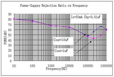 影響LDO輸出噪聲的其它因素還有:LDO內(nèi)部極點、零點和輸出極點。增大輸出電容的容量或減輕輸出負載有利于降低高頻輸出噪聲。如圖為旁路電容對SG2001輸出噪聲影響。