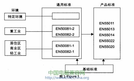 歐共體關(guān)于EMC的基本保護(hù)要求體現(xiàn)在其89/336/EEC指令中,所有進(jìn)人歐洲市場的電子電氣產(chǎn)品都必需符合該指令要求。該要求最終是通過貫徹歐洲標(biāo)準(zhǔn)(EN)來實(shí)現(xiàn)的,其標(biāo)準(zhǔn)體系如圖1所示,由歐洲標(biāo)準(zhǔn)化委員會(huì)(CENELEC)制定實(shí)施。